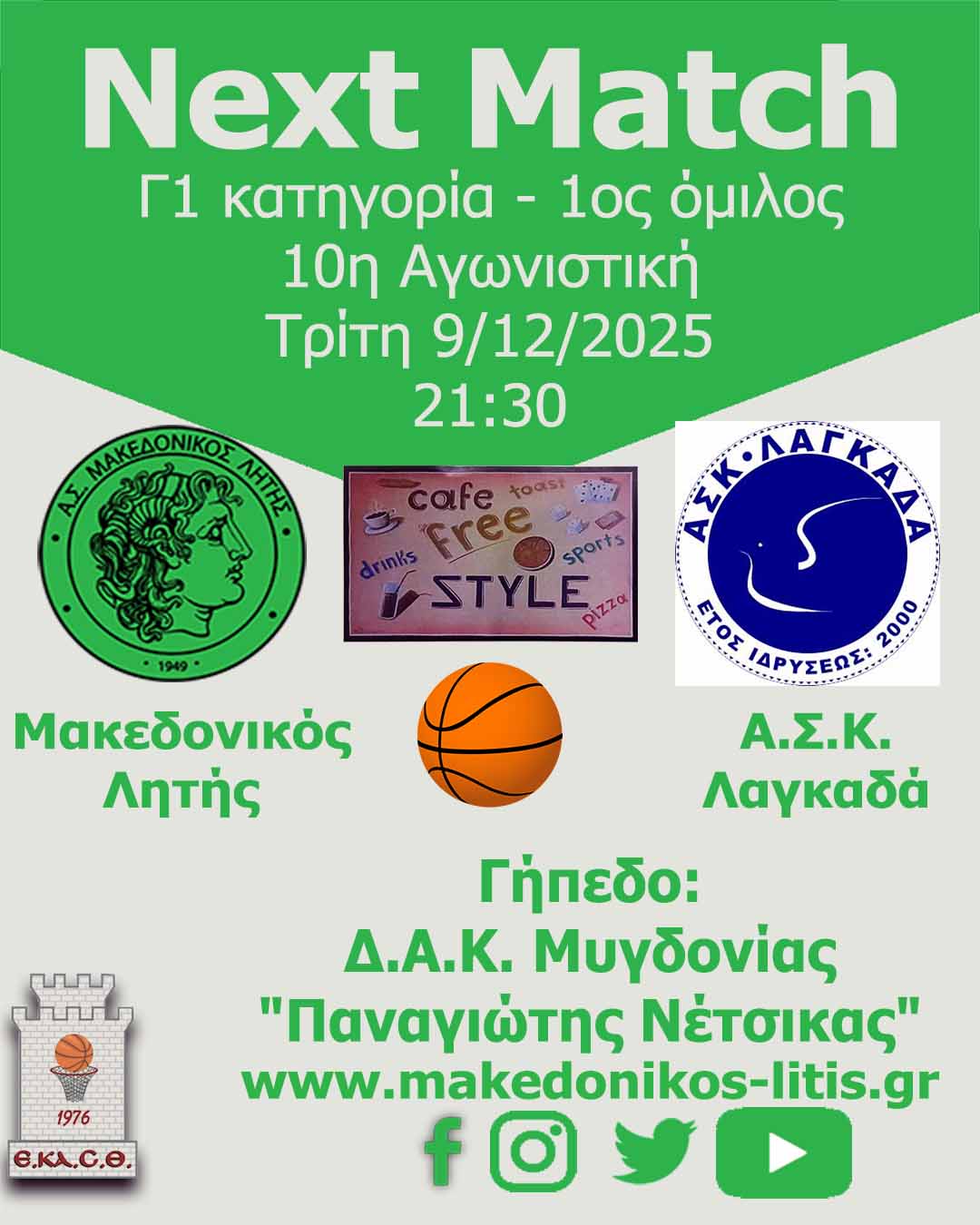 Την Τρίτη 9/12/2025 η ομάδα μας φιλοξενεί τον Α.Σ.Κ. Λαγκαδά με στόχο την 6η νίκη στο πρωτάθλημα.