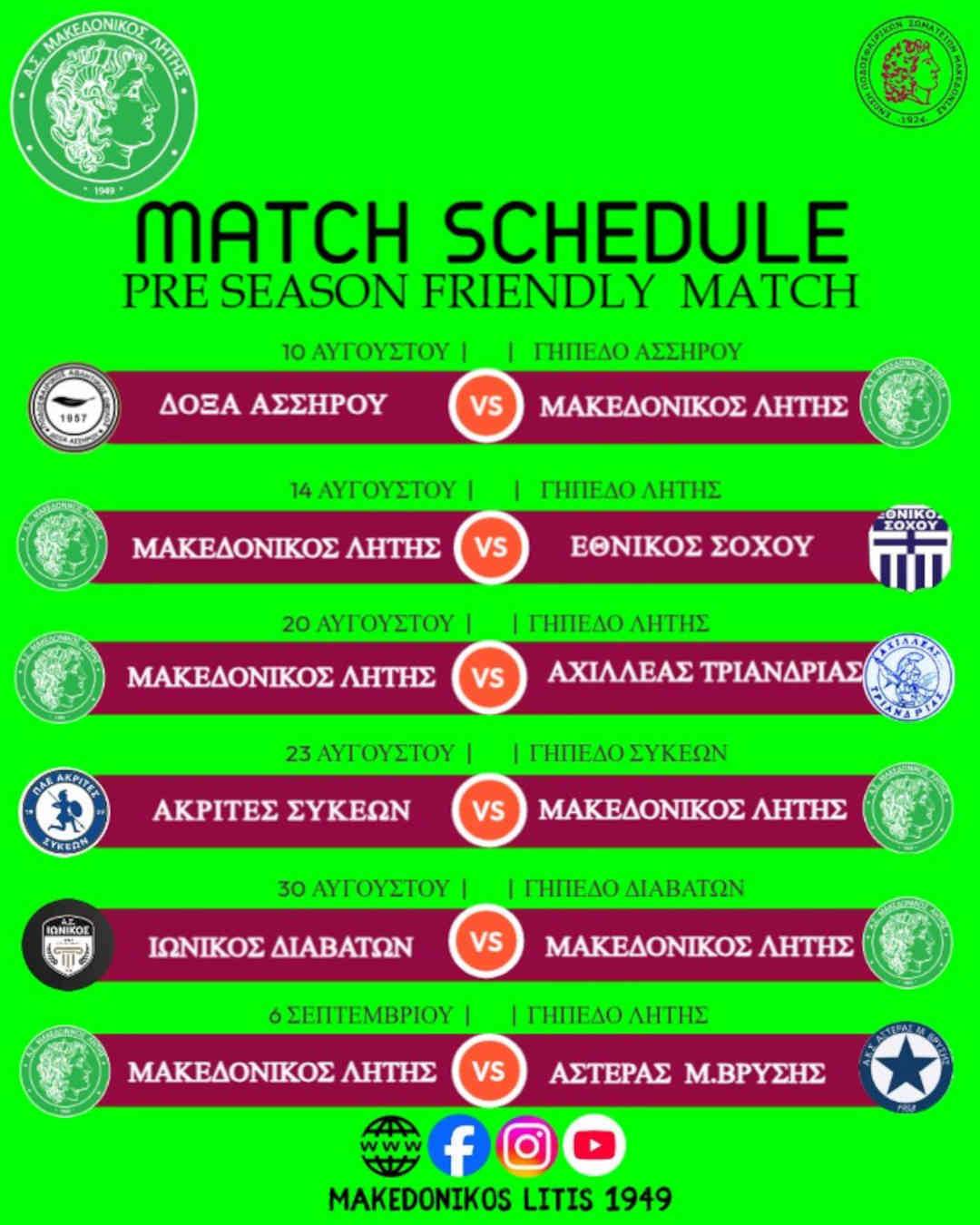 Η ομάδα μας θα δώσει έξι φιλικά παιχνίδια στο πλαίσιο της καλοκαιρινής προετοιμασίας, αντιμετωπίζοντας σημαντικούς αντιπάλους ενόψει της σεζόν 2025-2026.