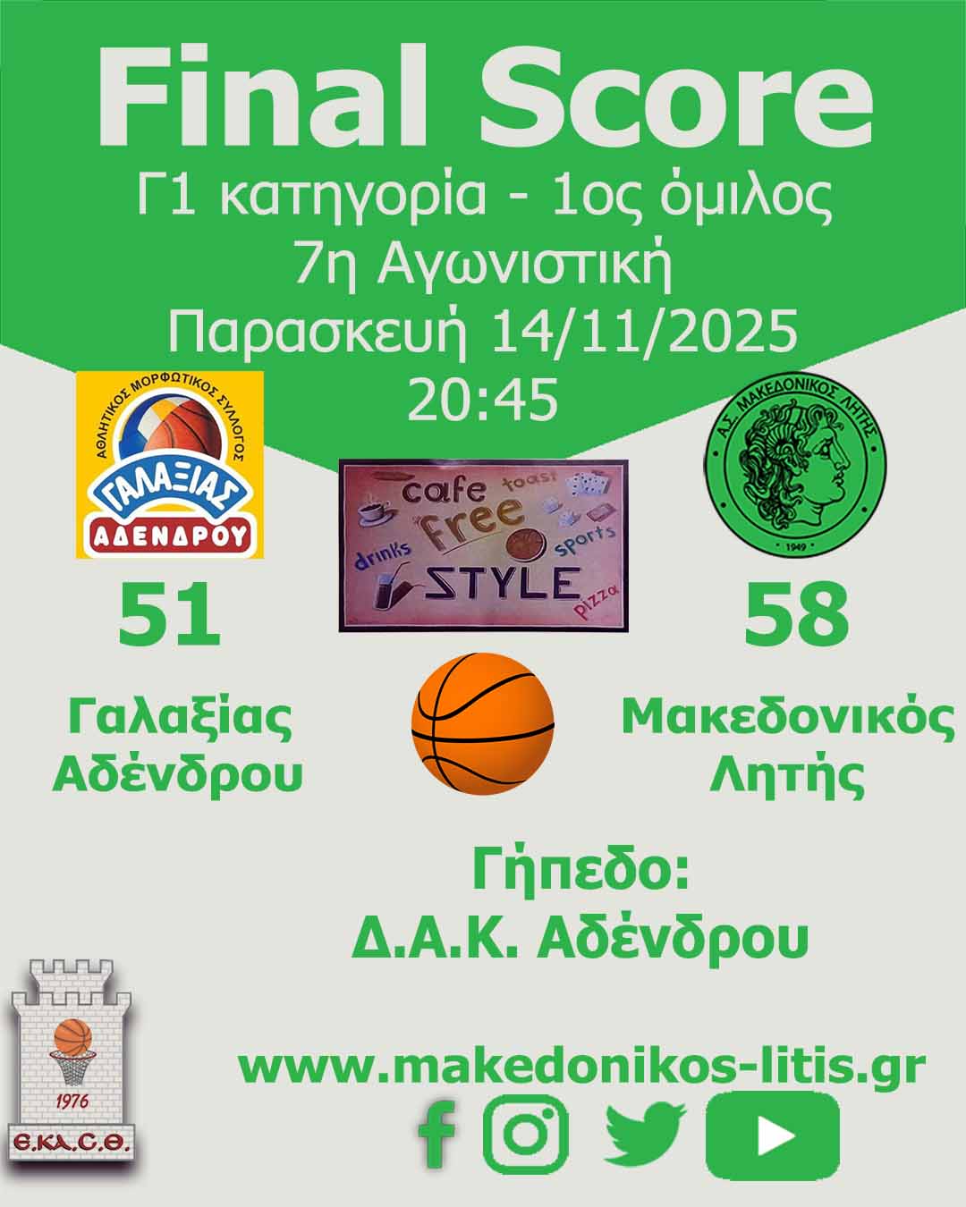 🏀 Νικηφόρο ήταν τον πέρασμα της ομάδας μας από το Άδενδρο, όπου επικράτησε του τοπικού Γαλαξία με σκορ 51-58 και σκαρφάλωσε στην 6η θέση της βαθμολογίας.