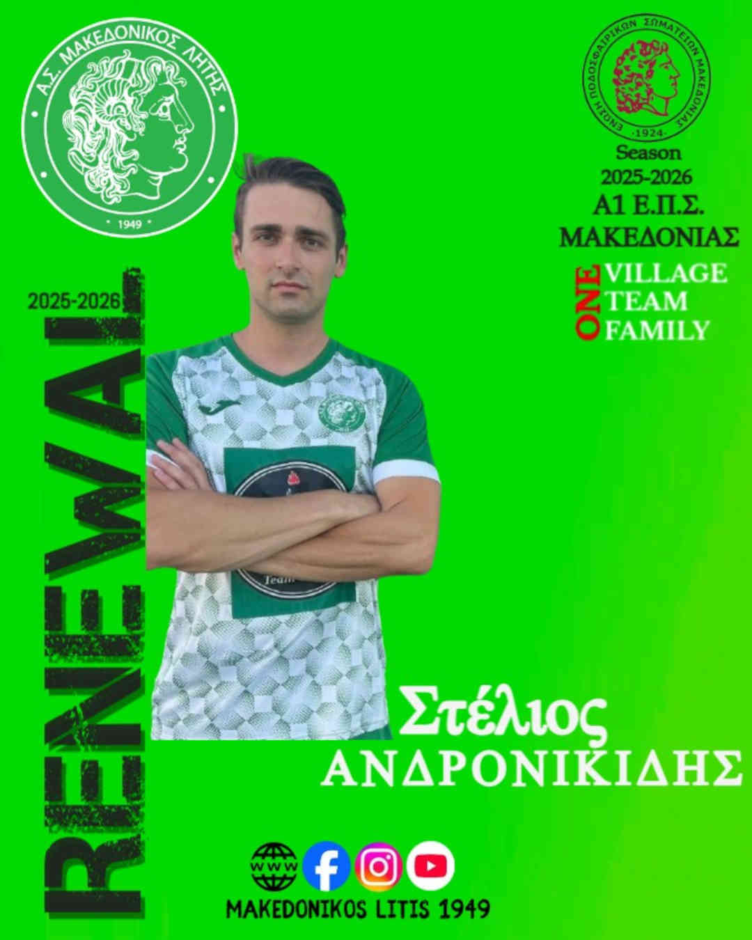 Μακεδονικός ΛητήςΗ ομάδα μας ανακοινώνει την ανανέωση της συνεργασίας, για ένα ακόμη χρόνο, με τους ποδοσφαιριστές Στέλιο Ανδρονικίδη και Παντελή Κοσμούδη.