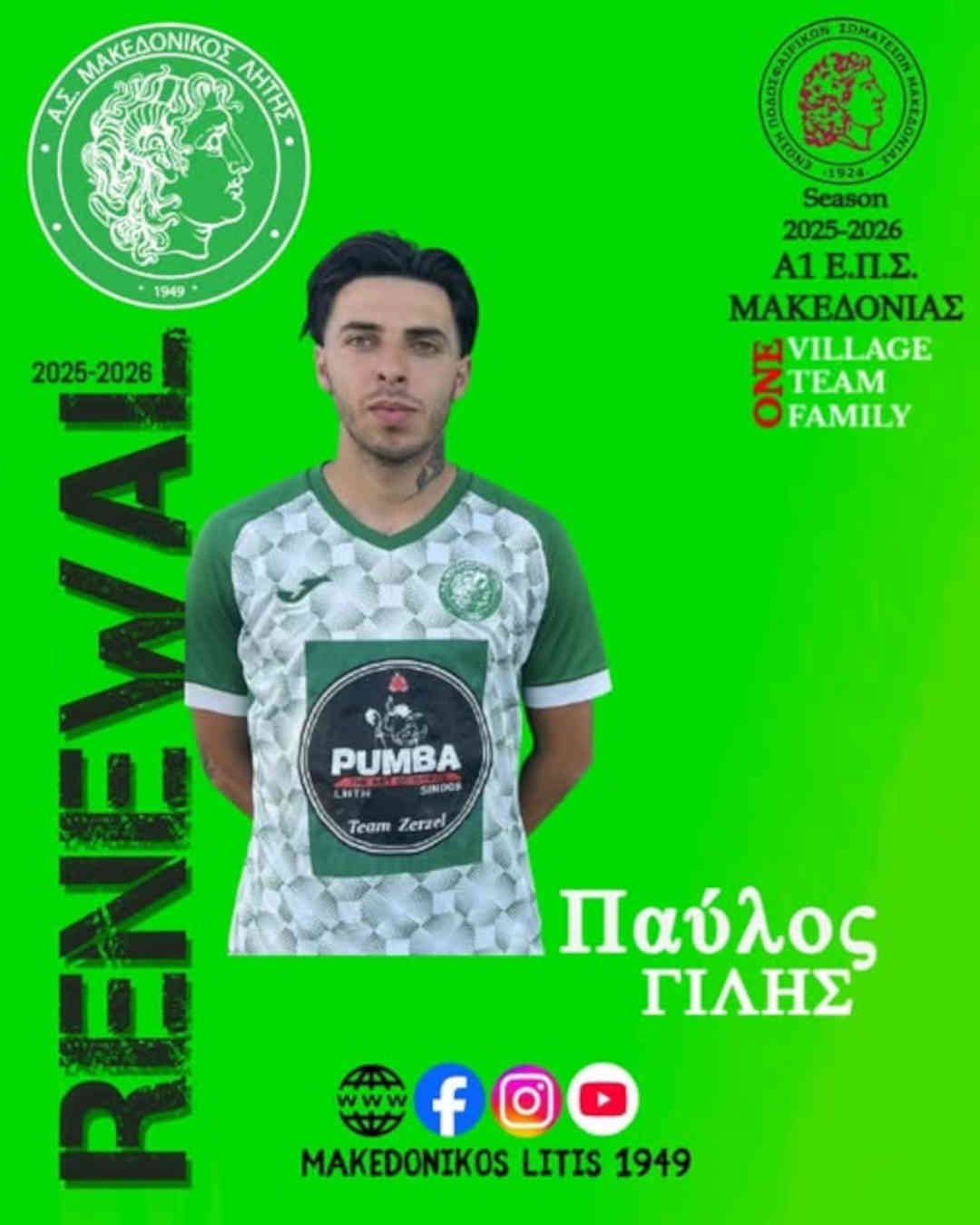 Παύλος ΓίληςΓίλης ΠαύλοςΗ ομάδα μας ανακοινώνει την ανανέωση της συνεργασίας, για ένα ακόμη χρόνο, με τον ποδοσφαιριστή Παύλο Γίλη.