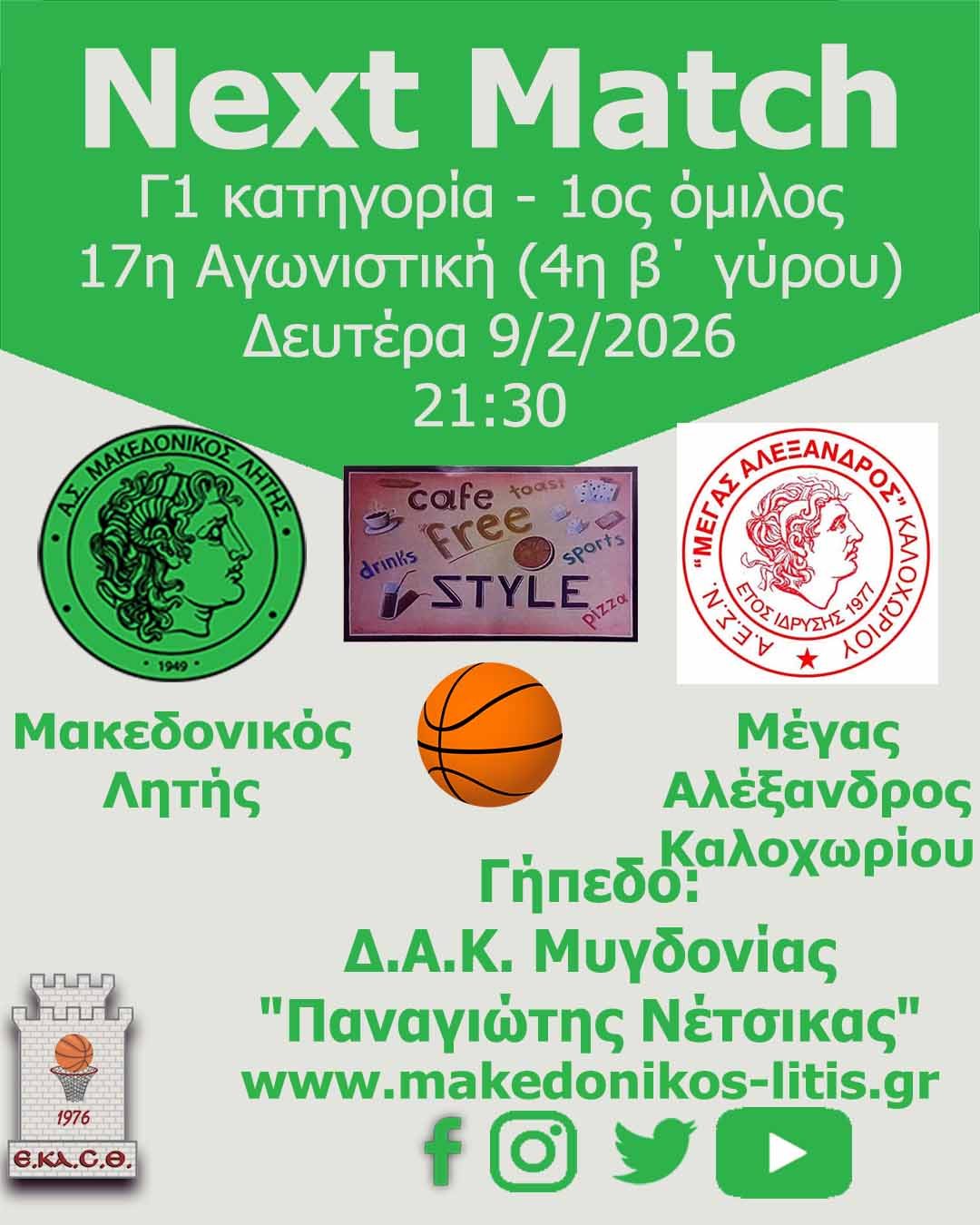 Περισσότερα: 🏀 Μακεδονικός Λητής - Μέγας Αλέξανδρος Καλοχωρίου (Match Day)